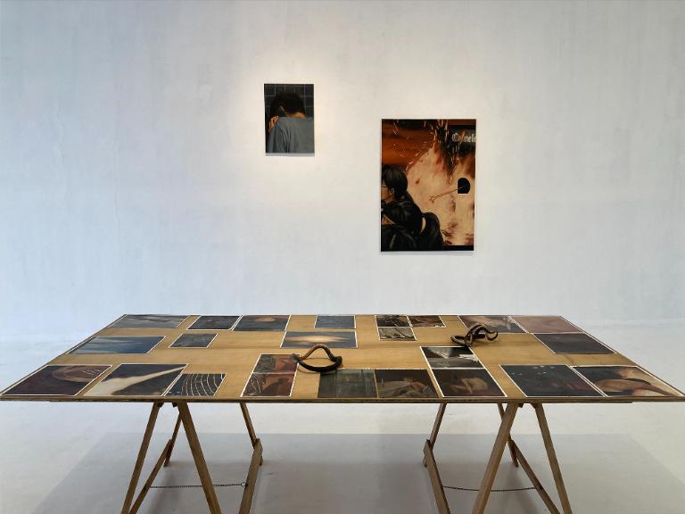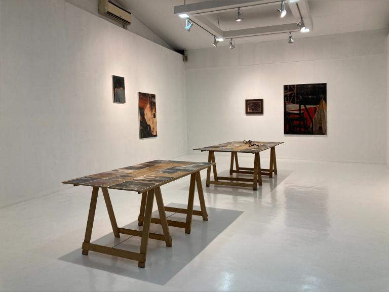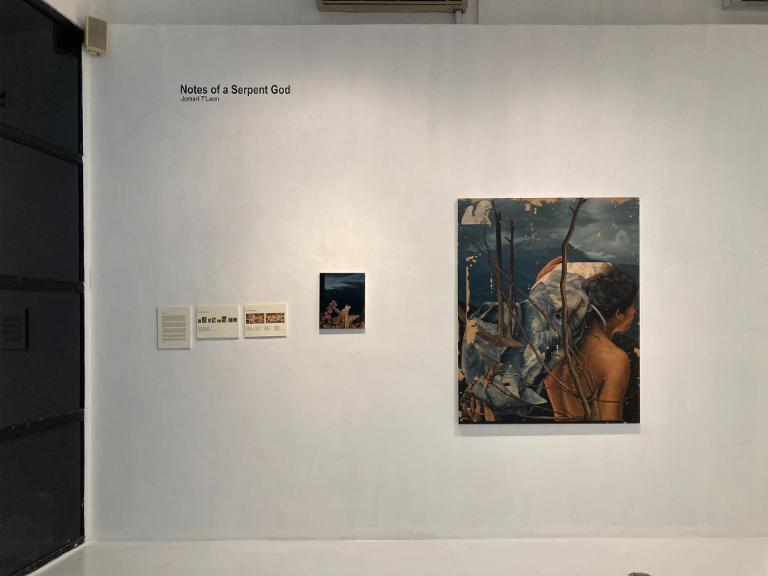 In Notes of a Serpent God, Jomari T’leon wanders the in-between—a liminal space where thought has not yet arrived, and meaning shifts like a tide-shaped shoreline. Direction comes to a halt. Heart leads before the mind concludes; intuition lights the path when reason lags. The exhibition dwells in uncertainty yet does not offer empty resolutions, treating inner conflict and vulnerability as material, recognizing transition as an entry point where meaning develops. Life in this space is fragile yet profound, tracing a quiet journey of becoming. This process unfolds with courage and tenderness, moving authentically beyond struggle. Here, instinct precedes reason, with pieces in the exhibition set in varying states of uncertainty. Inner conflict and precarity feel almost tangible. Becoming is observed quietly. It’s not a struggle, rather, a gentle move toward honesty.