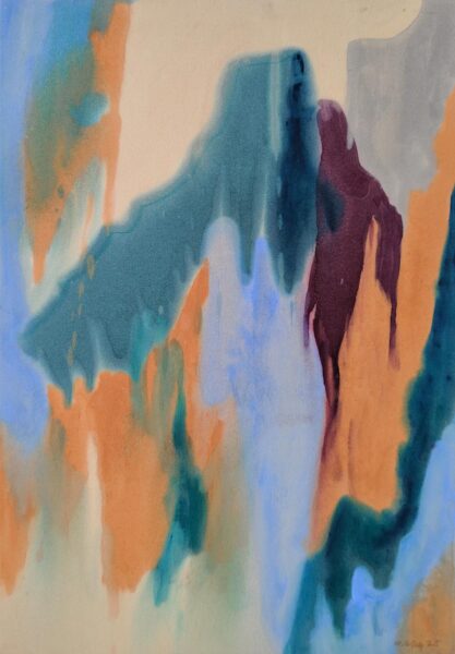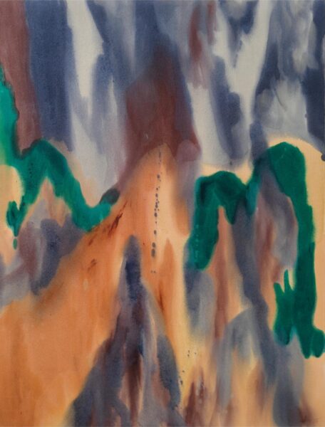 Painting these was a communion of sorts. Each gesture and stroke was impulsive and visceral, the trace of my roiling feelings and marks of both hope and despair. From coming into work surrounded by my colleagues for eight hours every Monday to Friday, I was left alone in my studio, painting to music interrupted by ads on Spotify as I was ejected from the family plan my brother was paying for, on account of being located elsewhere. Artist Barnett Newman looked at abstraction as a language, particularly one that has potential to speak to metaphysical and spiritual themes. I began to approach my work in this way, too.