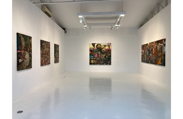 These canvases become Espino’s own resistance, his refusal to capitulate. His brushstrokes multiply, proliferate, spill past the borders of containment. The painter insists that the tremendous exertion that bears us to the edge of sainthood, even if unnamed or uncanonized, is not futile. For it is in the very act of labor, in the unrecorded strength of lives lived against silence, that sanctity dwells—if not conferred, then embodied.